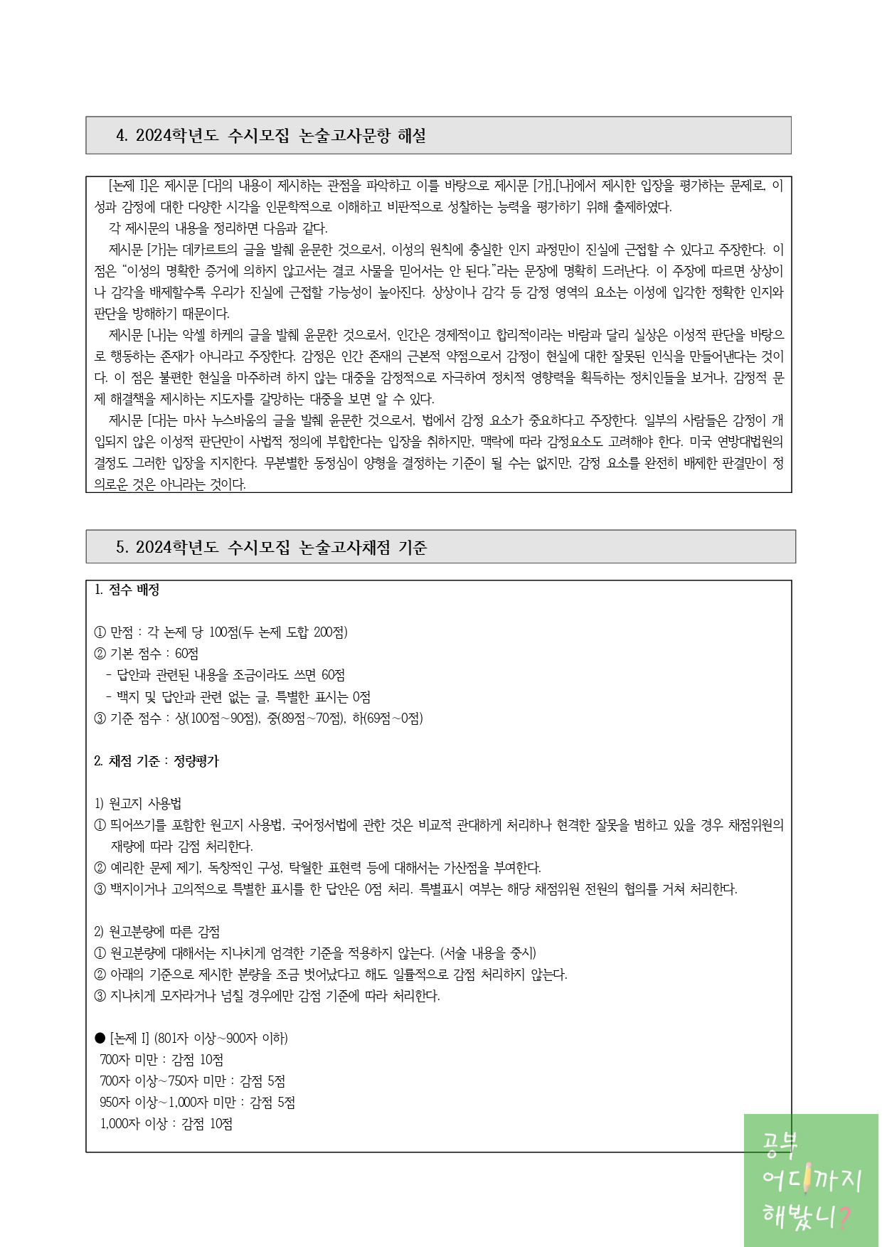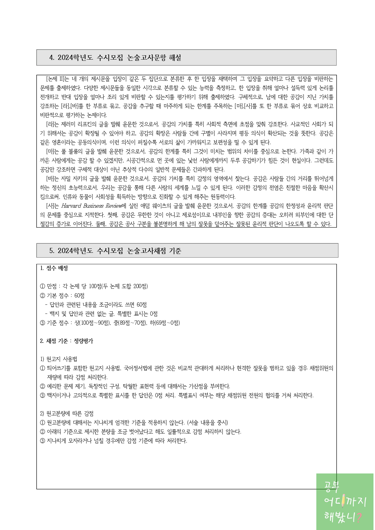 5. 2024학년도 수시모집 논술고사채점 기준