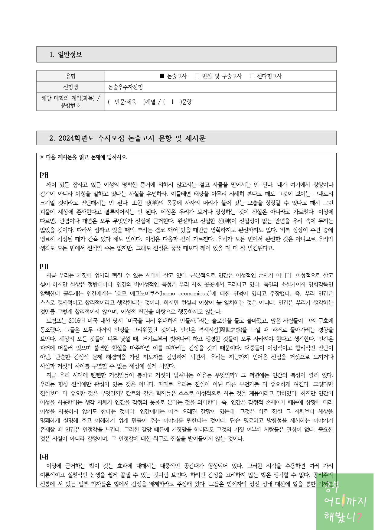 2. 2024학년도 수시모집 논술고사 문항 및 제시문